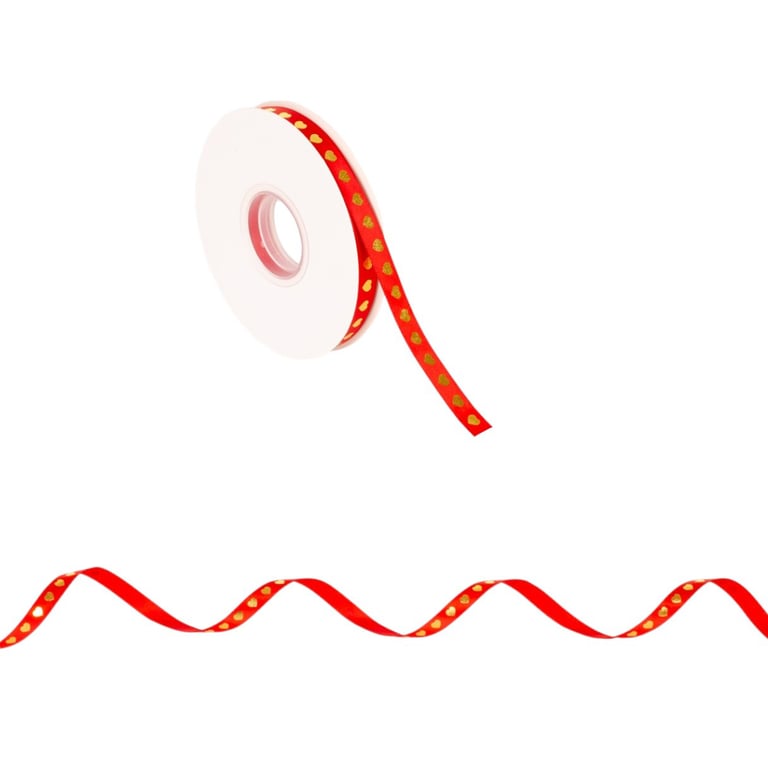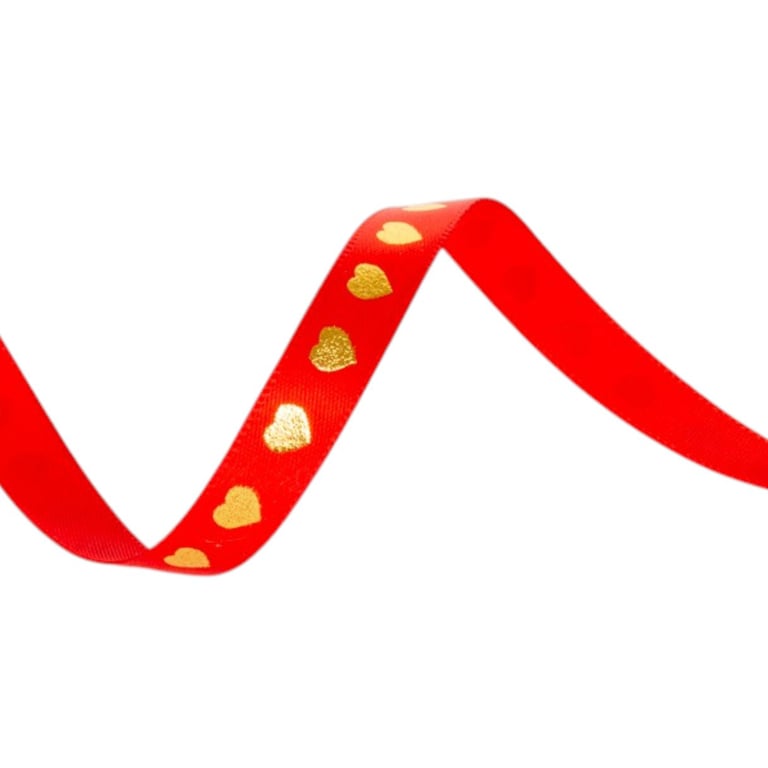 FITA CETIM 1 CMX36,5 M VERMELHA CORAÇÕES DOURADOS