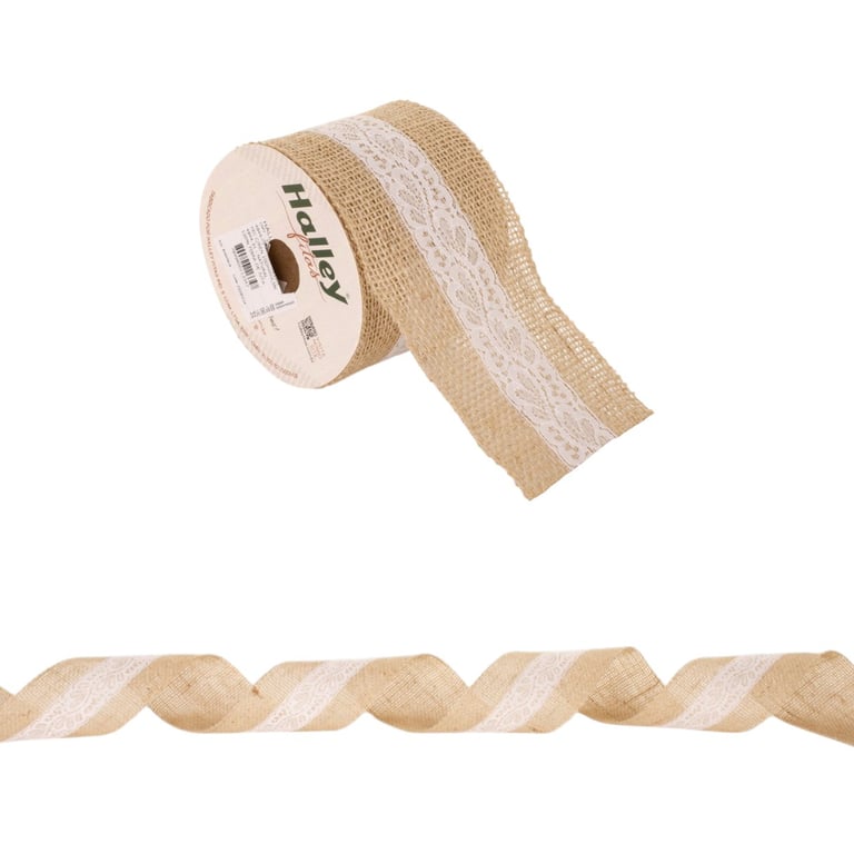 FITA JUTA 10 CMX9,5 M NATURAL COM RENDA TRAMA FECHADA