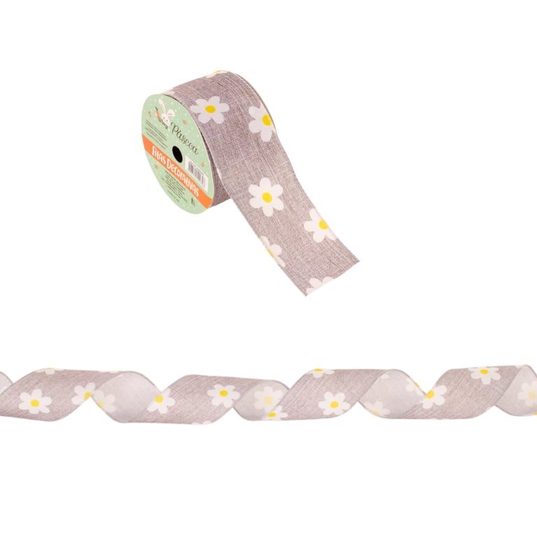 FITA TECIDO ARAMADA 6,3 CMX9,1 M MARGARIDAS
