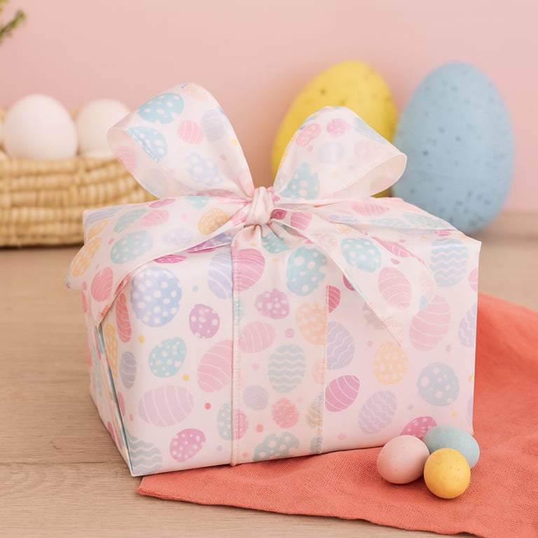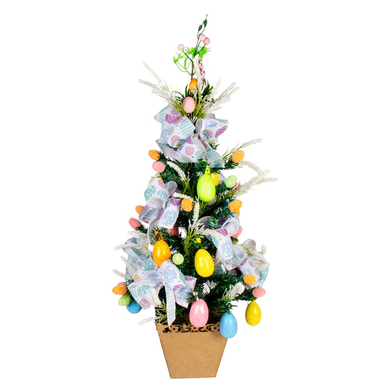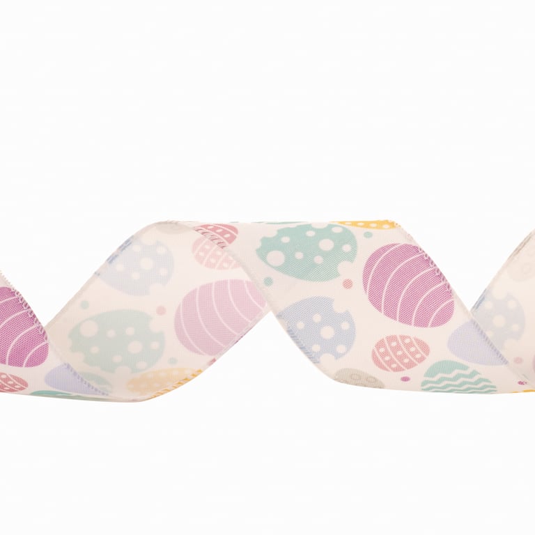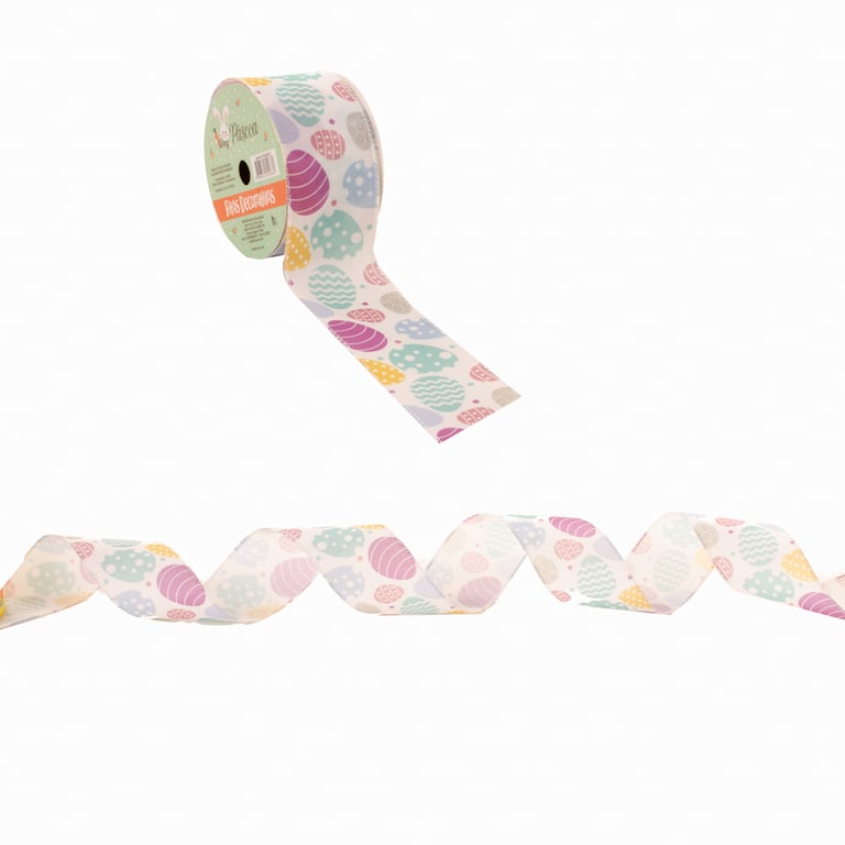 FITA TECIDO ARAMADA 6,3 CMX9,1 M PÁSCOA BRANCA COM OVOS COLORIDOS