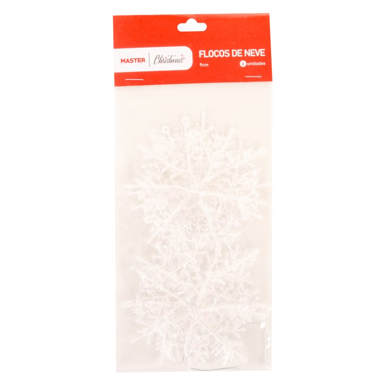 FLOCO DE NEVE 9 CM 6 PEÇAS BRANCO COM GLITTER HOLOGRÁFICO