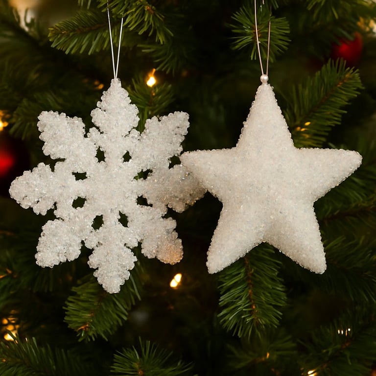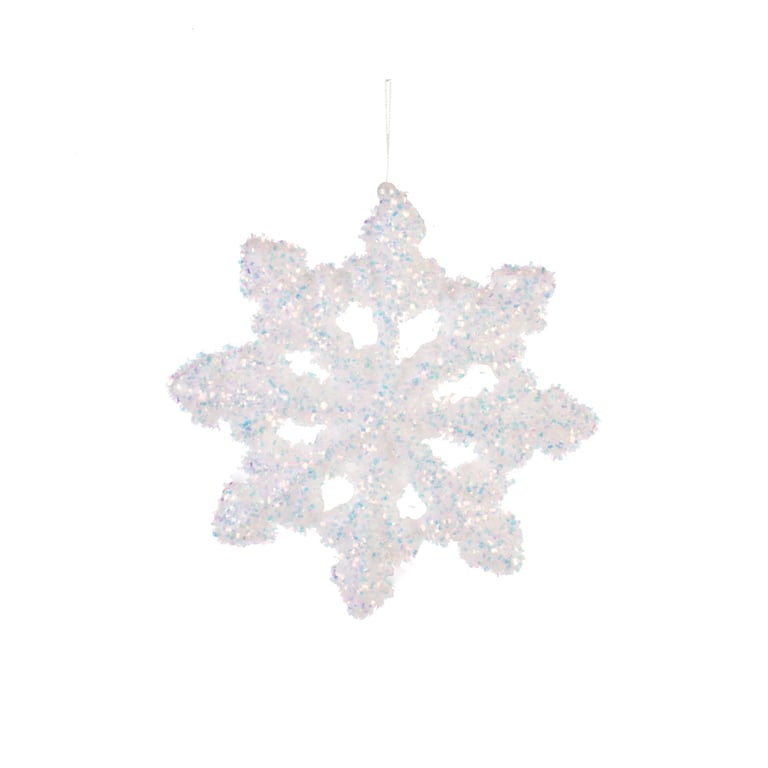 FLOCO DE NEVE ISOPOR 19 CM BRANCO COM GLITTER HOLOGRÁFICO
