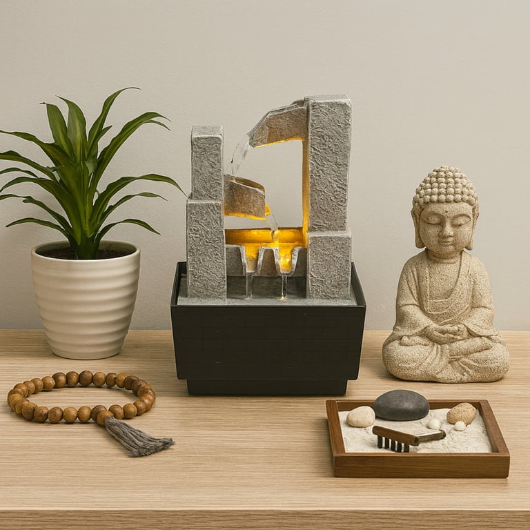 Sugestões de uso ALÉM DE SEREM LINDAS PEÇAS DECORATIVAS AS FONTES DE ÁGUA TRAZEM A SENSAÇÃO DE PAZ, HARMONIA E RELAXAMENTO PARA O AMBIENTE, ATRAVÉS DO SOM DAS QUEDAS DE ÁGUA.
