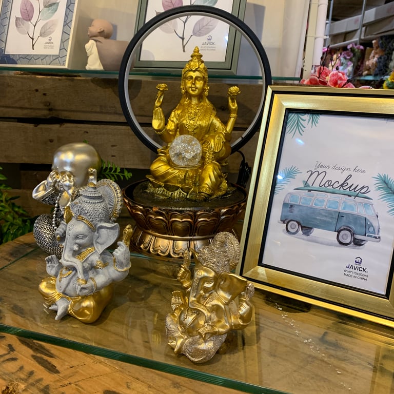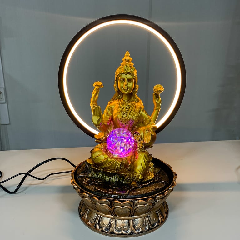 FONTE ÁGUA 35X20 CM BIVOLT 1 QUEDA DEUSA LAKSHMI COM ARCO DE LED