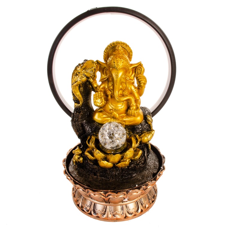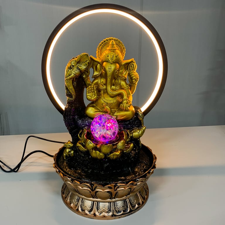 FONTE ÁGUA 35X20 CM BIVOLT 1 QUEDA ELEFANTE GANESHA COM ARCO DE LED