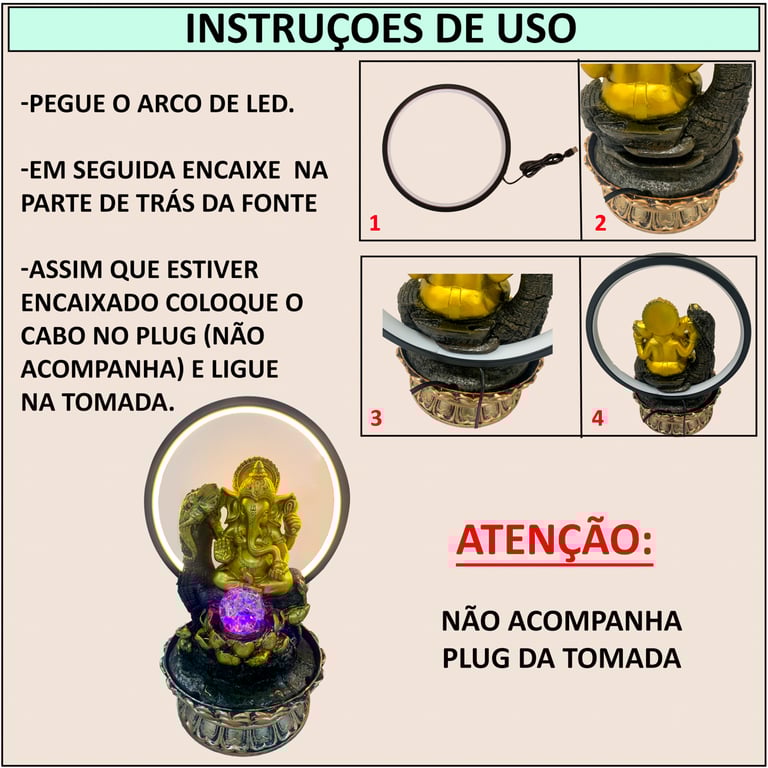 Observações POSSUI ARCO DE LED LUZ BRANCO QUENTE COM CABO USB(NÃO ACOMPANHA FONTE PARA TOMADA).COM BOMBA SUBMERSÍVEL DE AQUÁRIO.BIVOLT:110-220V..COM LUZ DE LED.DEVE-SE TAMPAR COM ÁGUA A BOMBA.2 VELOCIDADES.ACOMPANHA BOLA DE 5 CM.