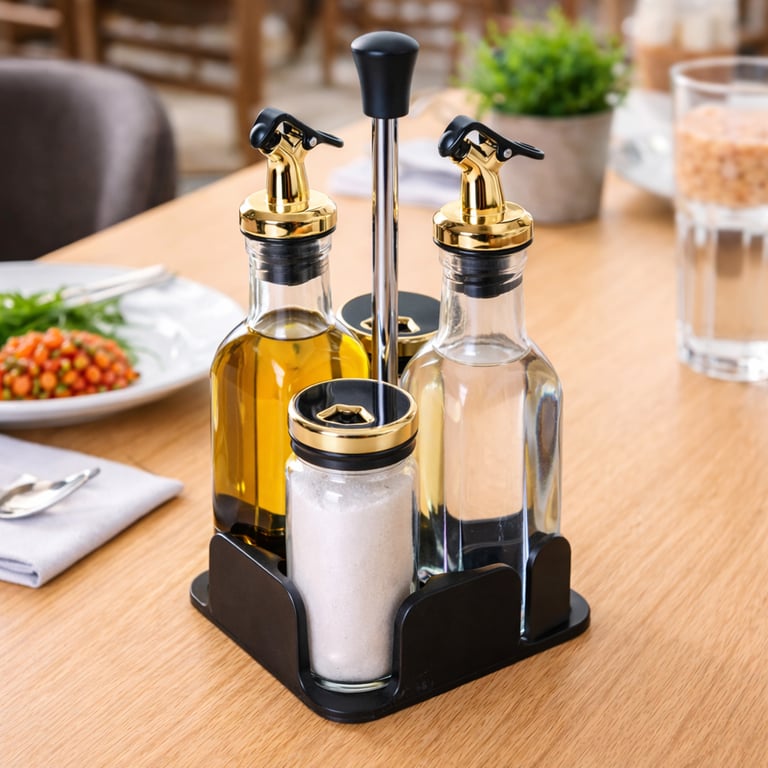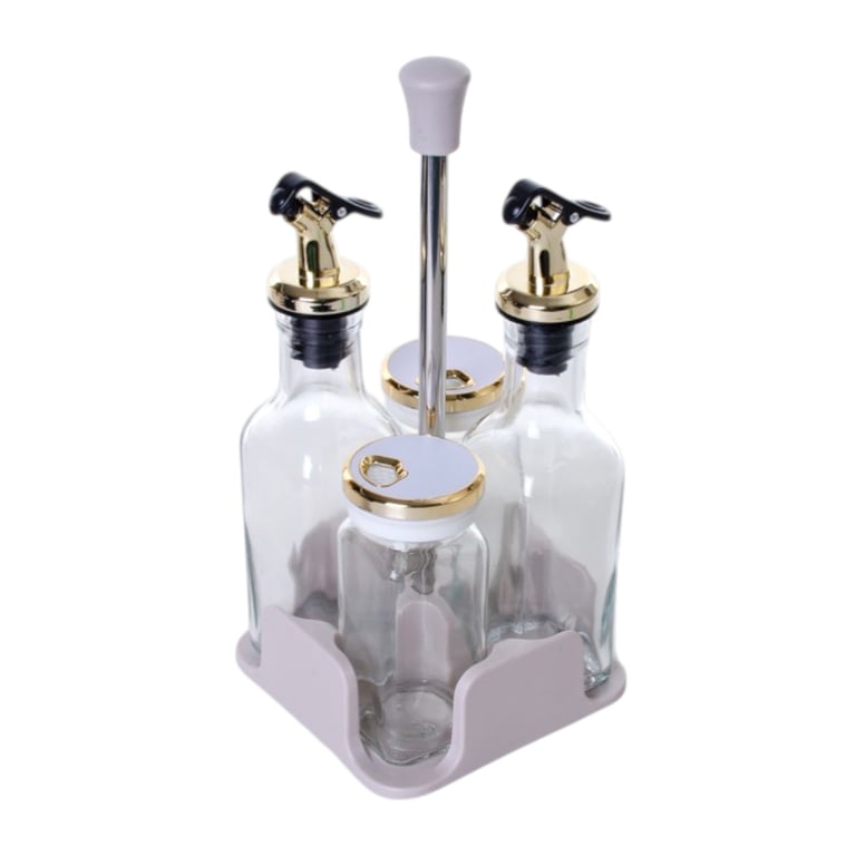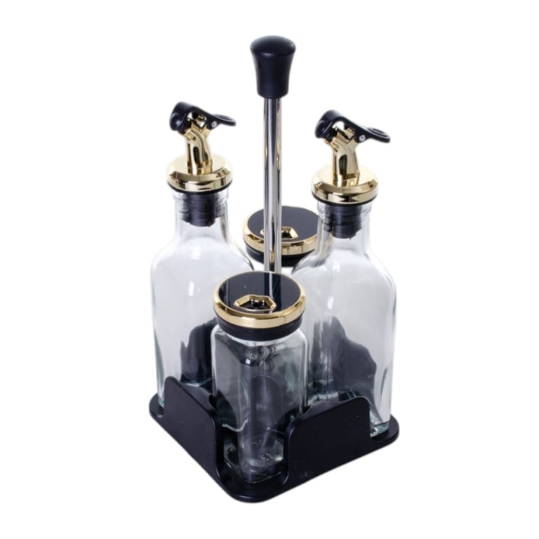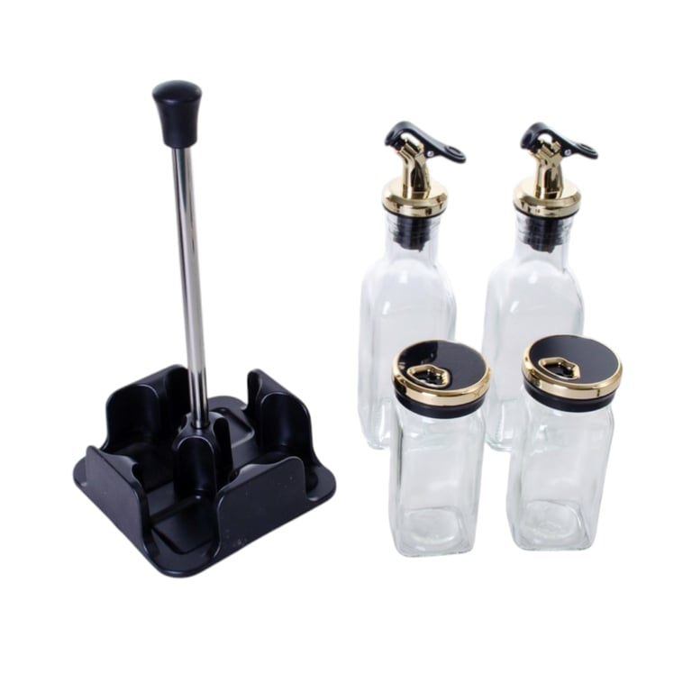 1 SUPORTE E 2 FRASCOS PARA VINAGRE E AZEITE 2 FRASCOS PARA CONDIMENTOS