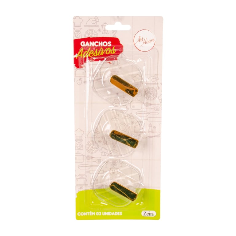 GANCHO PAREDE PLÁSTICO ACRÍLICO 3 PEÇAS 5 CM COM ADESIVO