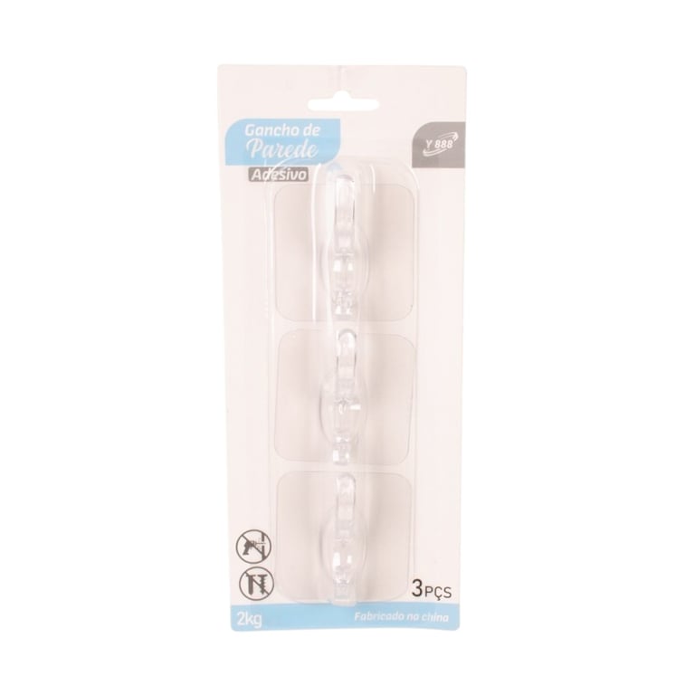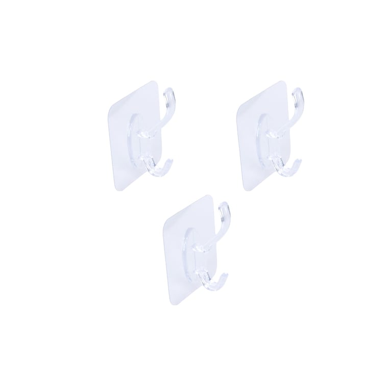 GANCHO PAREDE PLÁSTICO ACRÍLICO 3 PEÇAS 6 CM COM ADESIVO