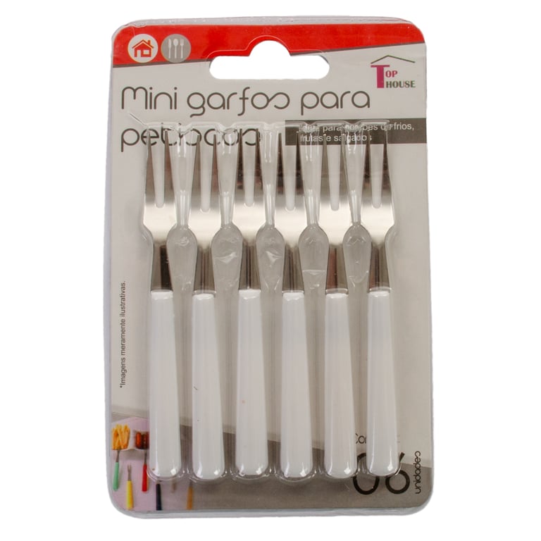 GARFO PARA PETISCOS 10 CM 6 PEÇAS INOX CABO PLÁSTICO
