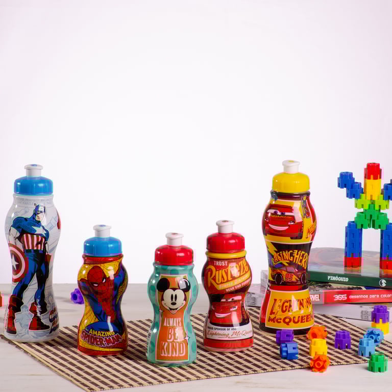 GARRAFA SQUEEZE 250 ML MARVEL COMICS COM BICO PLÁSTICA