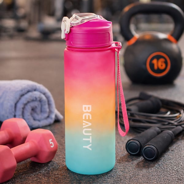 GARRAFA SQUEEZE 600 ML DEGRADÊ COM CANUDO PLÁSTICA