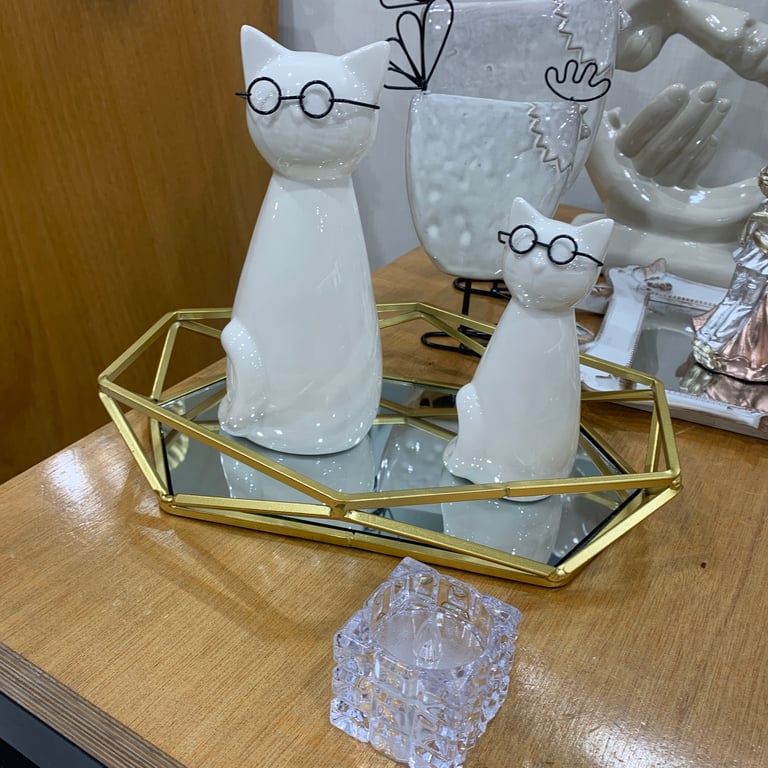 Sugestões de uso OS GATOS DECORATIVOS PODEM SER USADOS SOZINHOS OU COM OUTROS OBJETOS PARA COMPOR DECORAÇÕES, SOBREPOSTOS EM BANDEJAS EM VÁRIOS AMBIENTES DIFERENTES COMO: QUARTOS, SALAS, ESCRITÓRIOS, COZINHAS, HALLS DE ENTRADA, CONSULTÓRIOS, ENTRE OUTROS.
