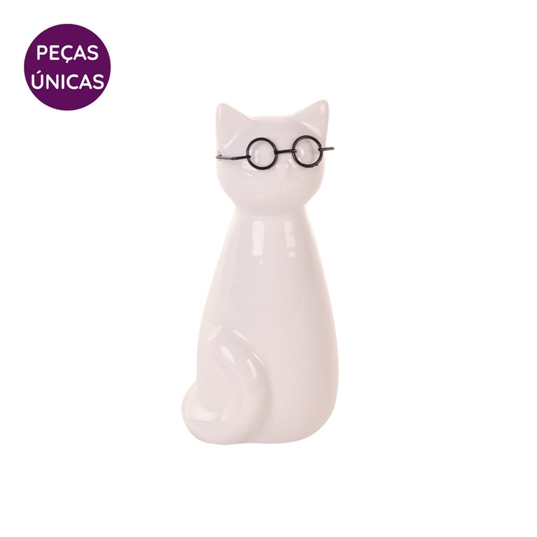 GATO CERÂMICA 14X6 CM COM ÓCULOS