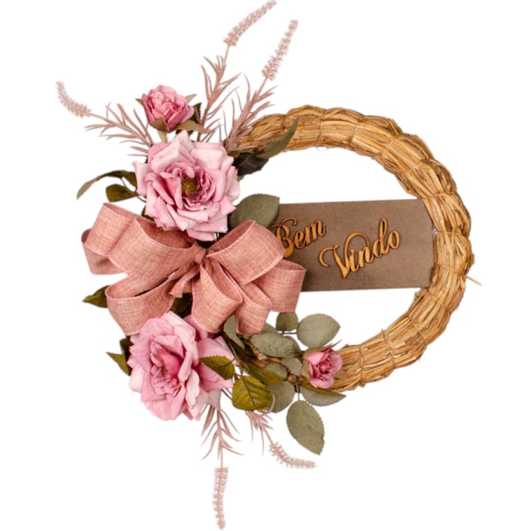 GUIRLANDA BEM VINDO 30 CM ROSA COM LAÇO