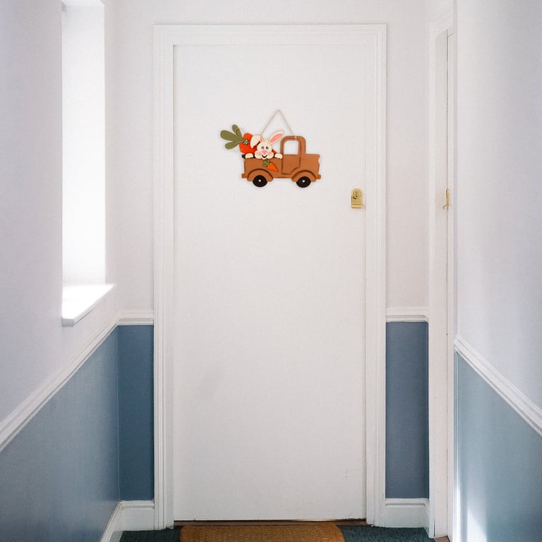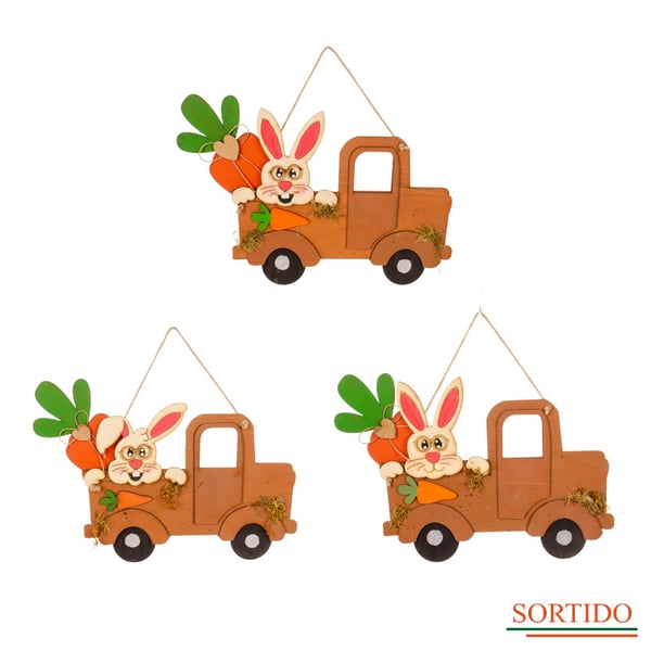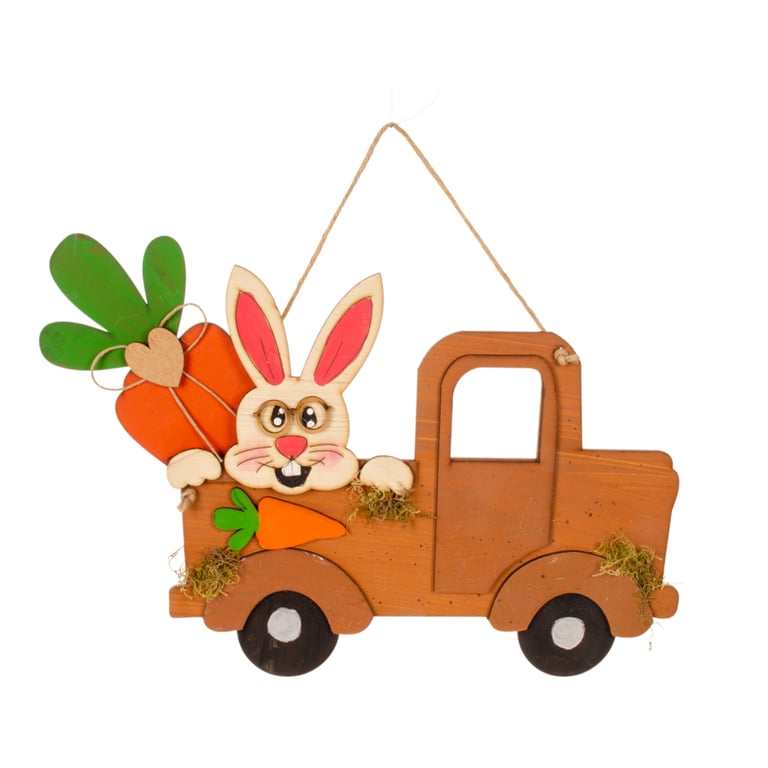 GUIRLANDA FELIZ PÁSCOA 26X36 CM CARRO COM COELHO E CENOURA MDF