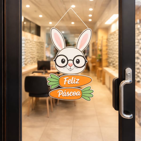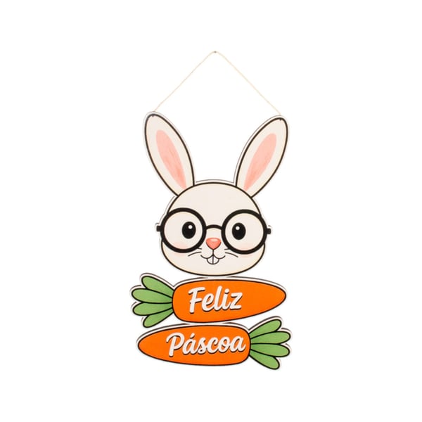 GUIRLANDA FELIZ PÁSCOA 30X18 CM COELHO DE ÓCULOS COM CENOURAS