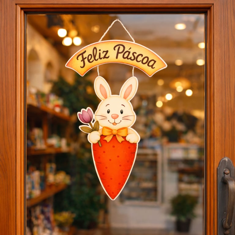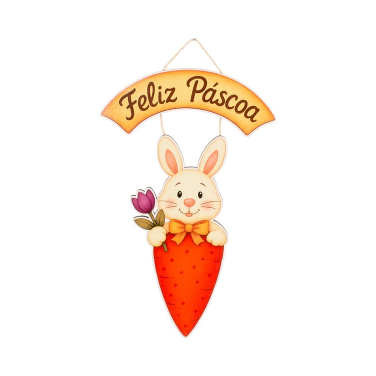 GUIRLANDA FELIZ PÁSCOA 33X20 CM COELHO COM CENOURA