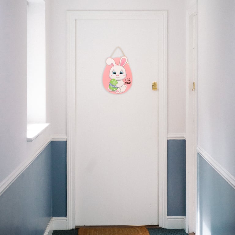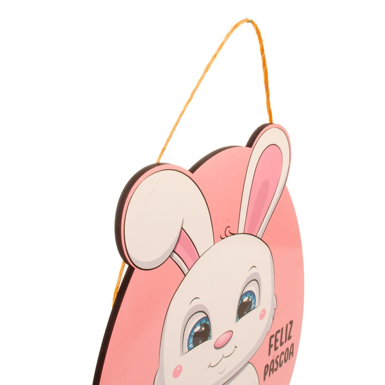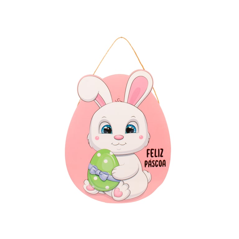 ENFEITE PORTA FELIZ PÁSCOA 41X27 CM OVO ROSA COM COELHO