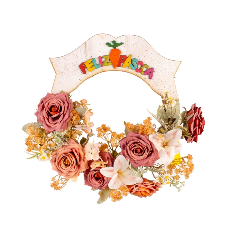 GUIRLANDA FELIZ PÁSCOA 38 CM ROSAS LÍRIO