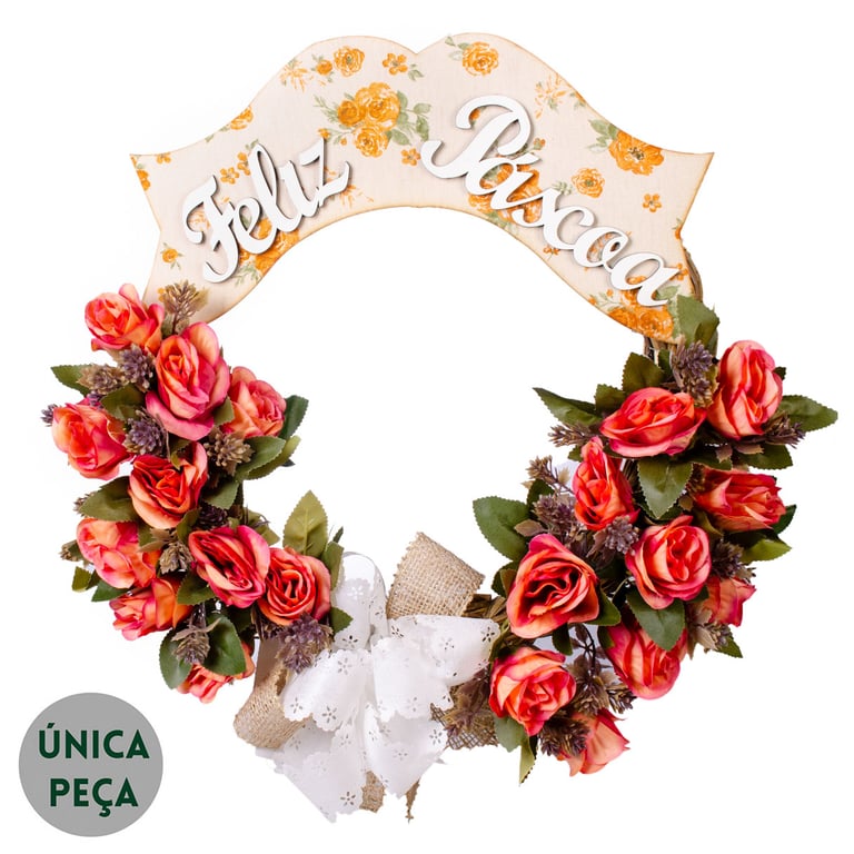 GUIRLANDA FELIZ PÁSCOA 45 CM COM ROSAS