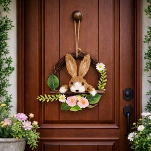 GUIRLANDA PÁSCOA 27 CM ROSTO COELHO DE PALHA COM FLORES