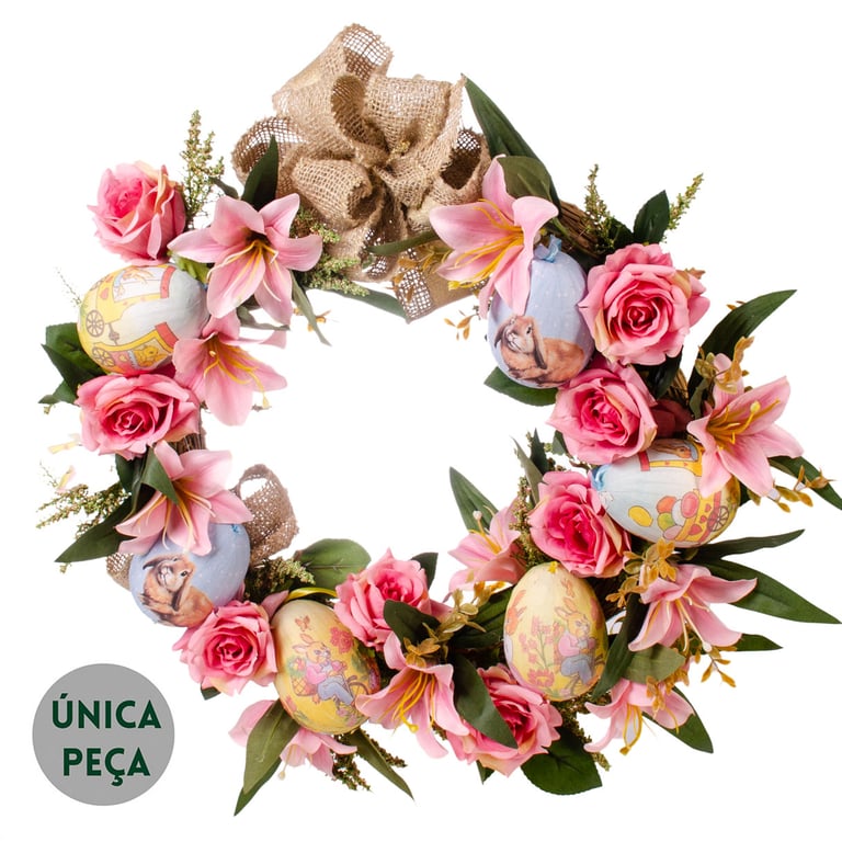GUIRLANDA PÁSCOA 48 CM COM LAÇO ROSA E OVOS