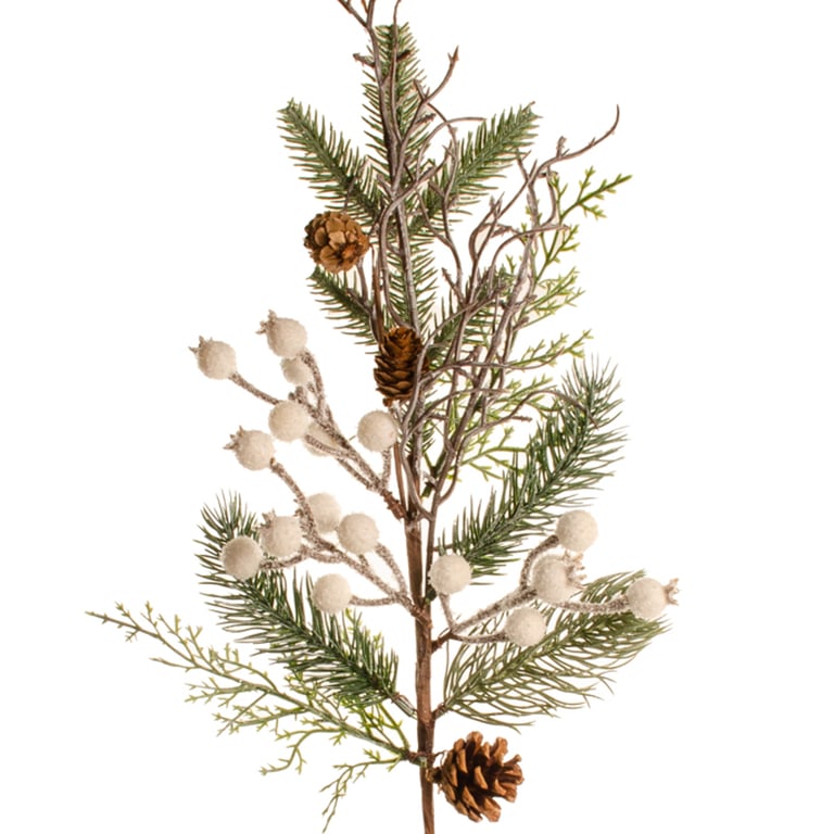 HASTE CIPRESTE 60 CM COM ROMÃS NEVADAS E PINHAS