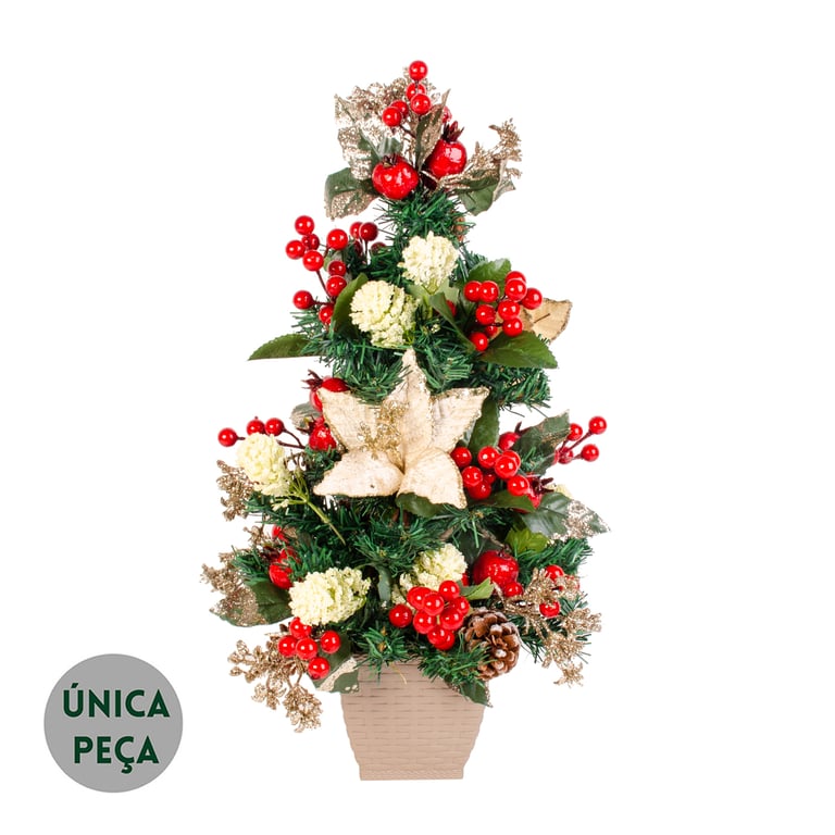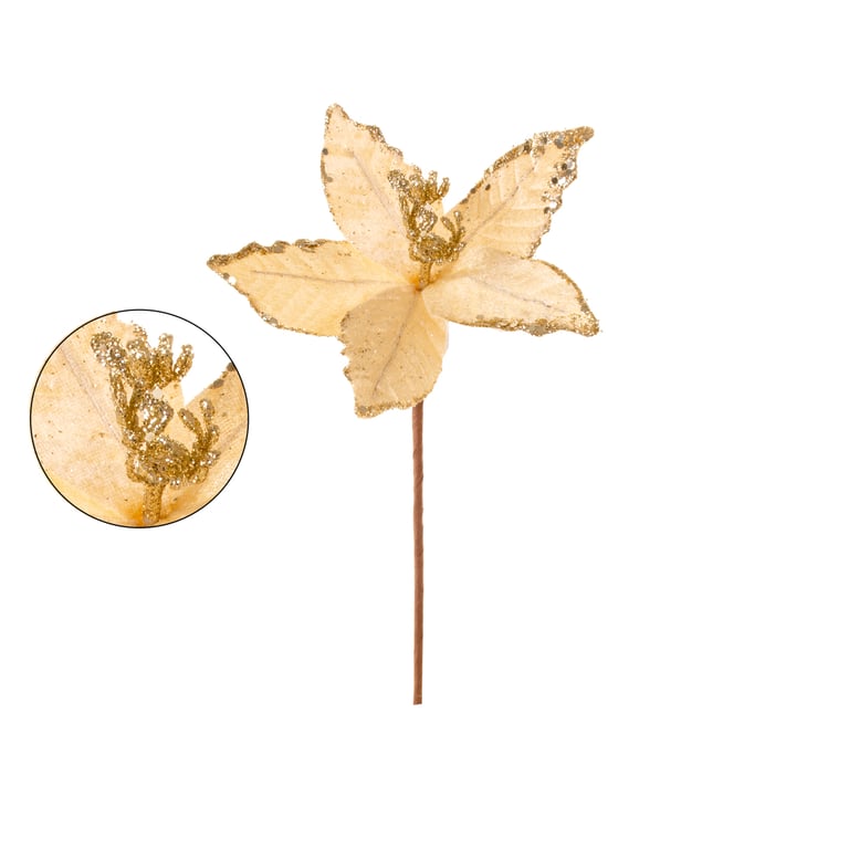 HASTE FLOR NATAL 25 CM POINSÉTIA CHAMPAGNE BORDA E MIOLO GLITTER