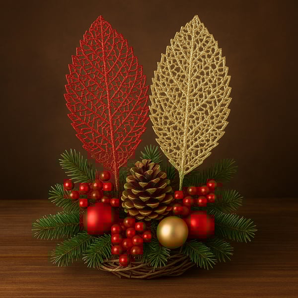 HASTE FOLHA 36 CM TELADA COM GLITTER