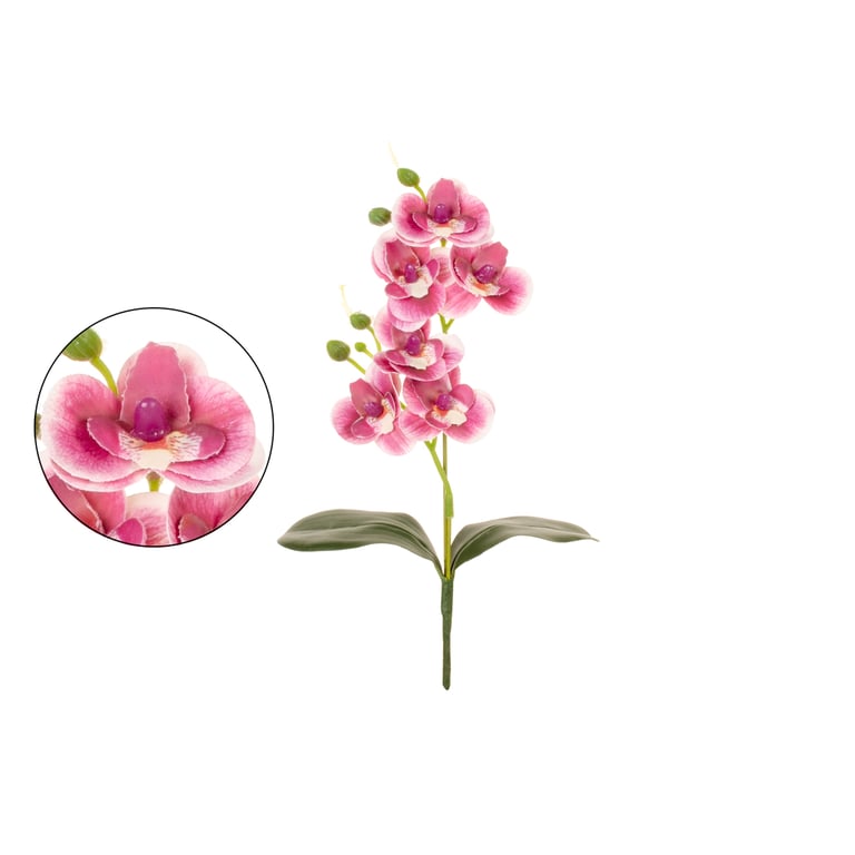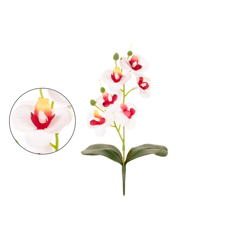 HASTE ORQUÍDEA 6 FLORES 24 CM SILICONE COM FOLHAS FALENÓPILIS
