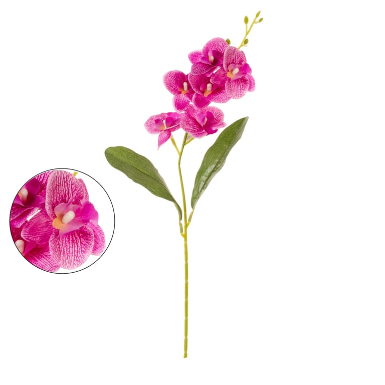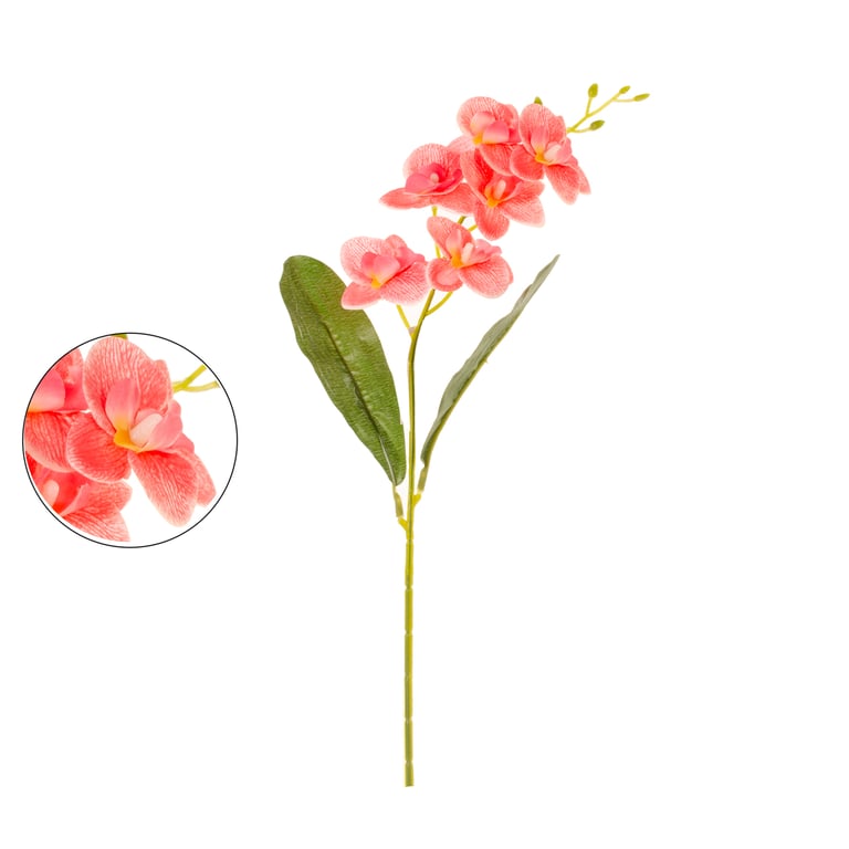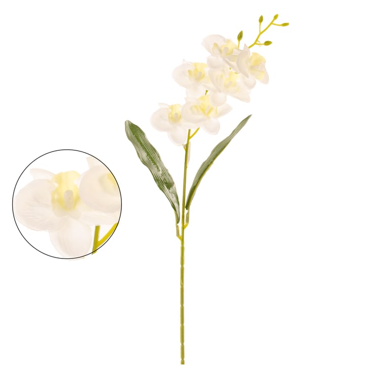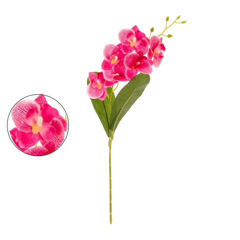 HASTE ORQUÍDEA 6 FLORES 45 CM COM FOLHAS FALENÓPOLIS