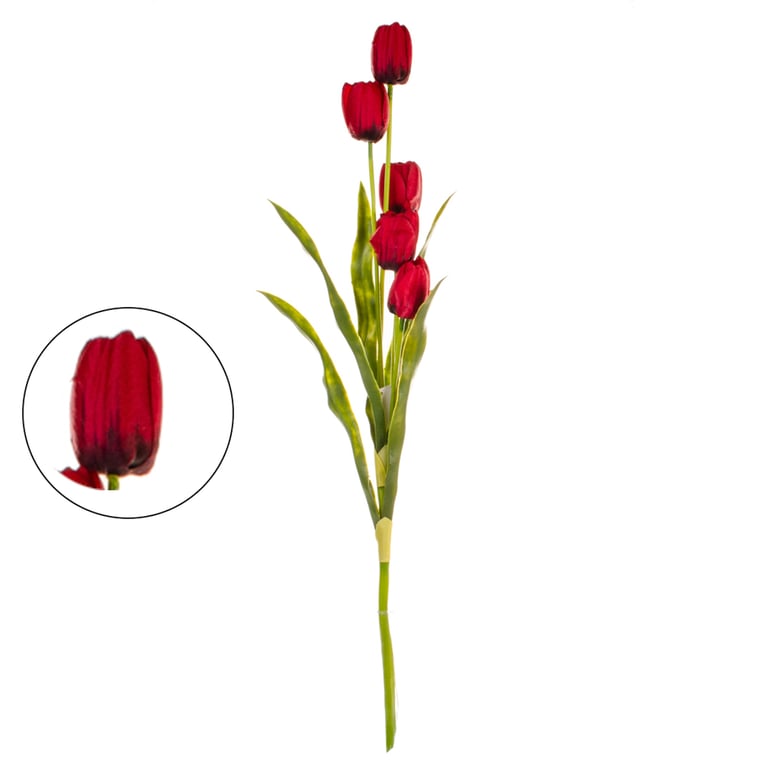 HASTE TULIPA 5 FLORES 84 CM COM FOLHAS ESTREITAS