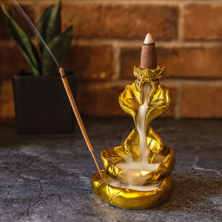 INCENSÁRIO CASCATA 8,8X7X6,8 CM DOURADO RESINA