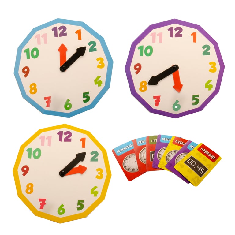 Observações CONTÉM 3 RELÓGIOS COM PONTEIROS E 42 CARTAS.PODEM PARTICIPAR DE 2 A 3 JOGADORES.MODO DE JOGAR:CADA JOGADOR DEVE ESCOLHER UM RELÓGIO E AJUSTAR OS PONTEIROS NO NÚMERO 12 (DOZE HORAS).EM SEGUIDA EMBARALHAR AS CARTAS E COLOCÁ-LAS EM UM MONTE.O PRIMEIRO PARTICIPANTE RETIRA UMA CARTA DO MONTE E FALA O QUE ESTÁ ESCRITO PARA TODOS OUVIREM,EM SEGUIDA ELE DEVE ADIANTAR OU ATRASAR O TEMPO CORRESPONDENTE NA CARTA EM SEU RELÓGIO E DEVOLVER A CARTA EMBAIXO DO MONTE.VENCE QUEM CHEGAR OU PASSAR PELO MEIO DIA,OU SEJA,COMPLETAR O PERCURSO DE 12 HORAS PRIMEIRO.
