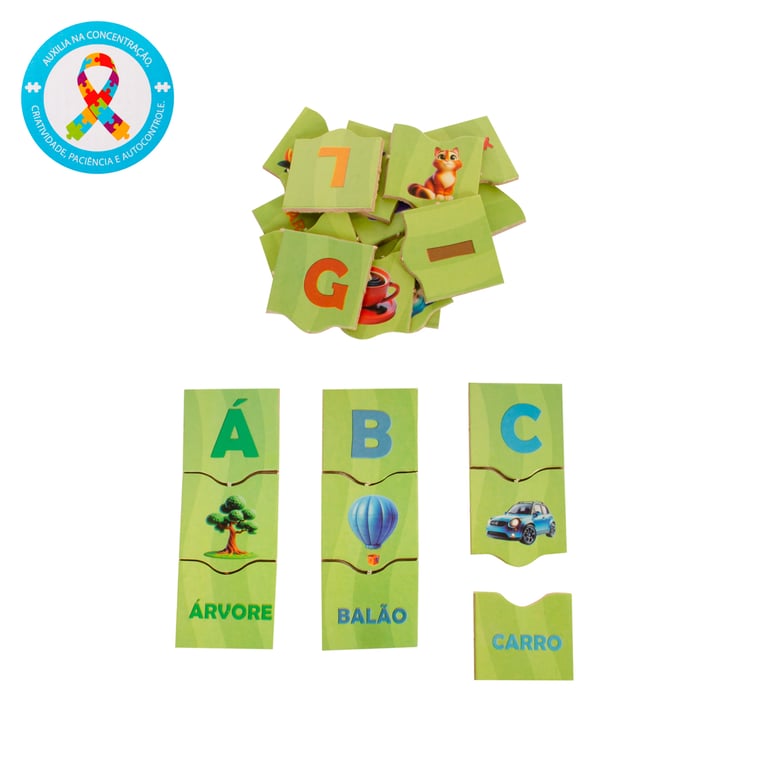 Observações PEÇAS EM MADEIRA COM ADESIVO COLADO.PEÇAS COM IMAGEM, NOME DA IMAGEM E LETRA INICIAL DA IMAGEM QUE DEVEM SER ENCAIXADAS.