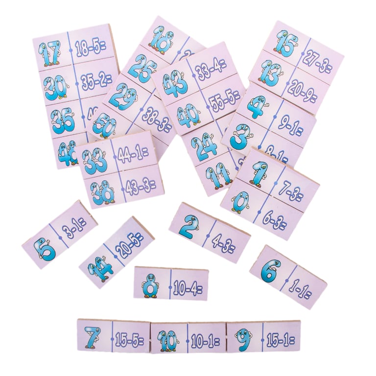JOGO DOMINÓ 28 PEÇAS SUBTRAÇÃO MADEIRA