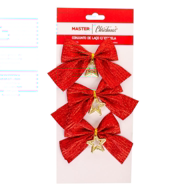 LAÇO TECIDO 10X10 CM 3 PEÇAS COM PENDENTE ESTRELA METALIZADO