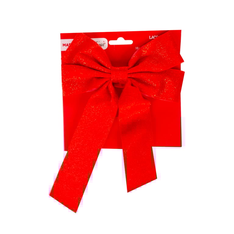 LAÇO TECIDO 28X18 CM VERMELHO AVELUDADO COM GLITTER