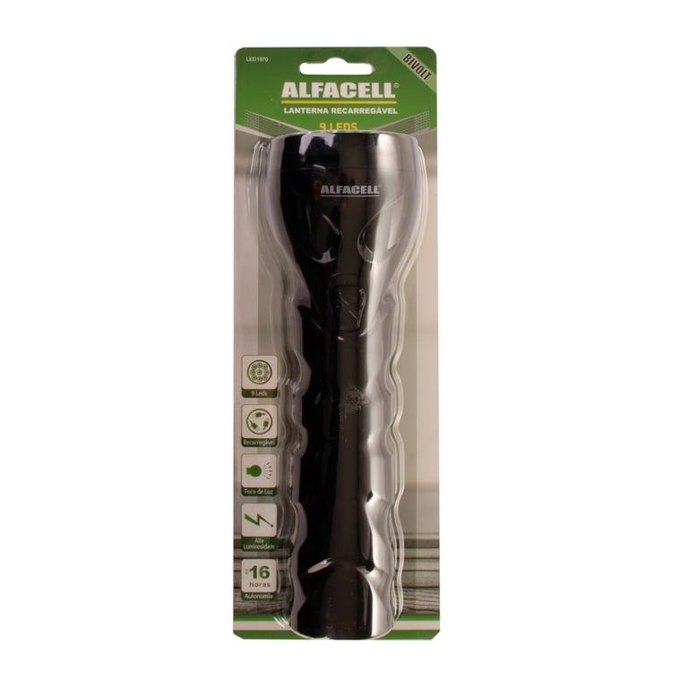 LANTERNA 9 LEDS 22X6 CM RECARREGÁVEL PRETA BIVOLT