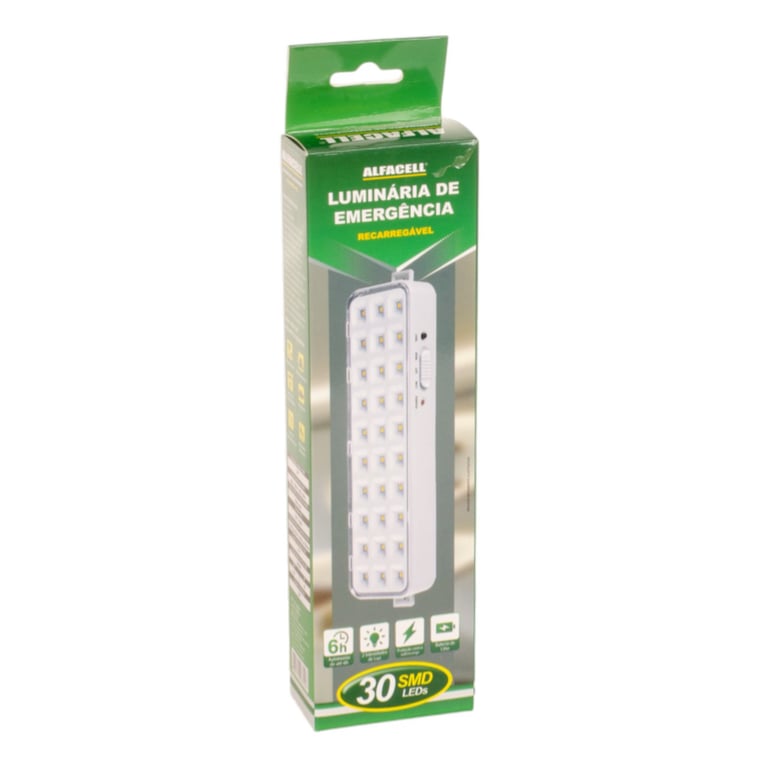 LUMINÁRIA DE EMERGÊNCIA 20X5,5 CM 30 LEDS SMD RECARREGÁVEL