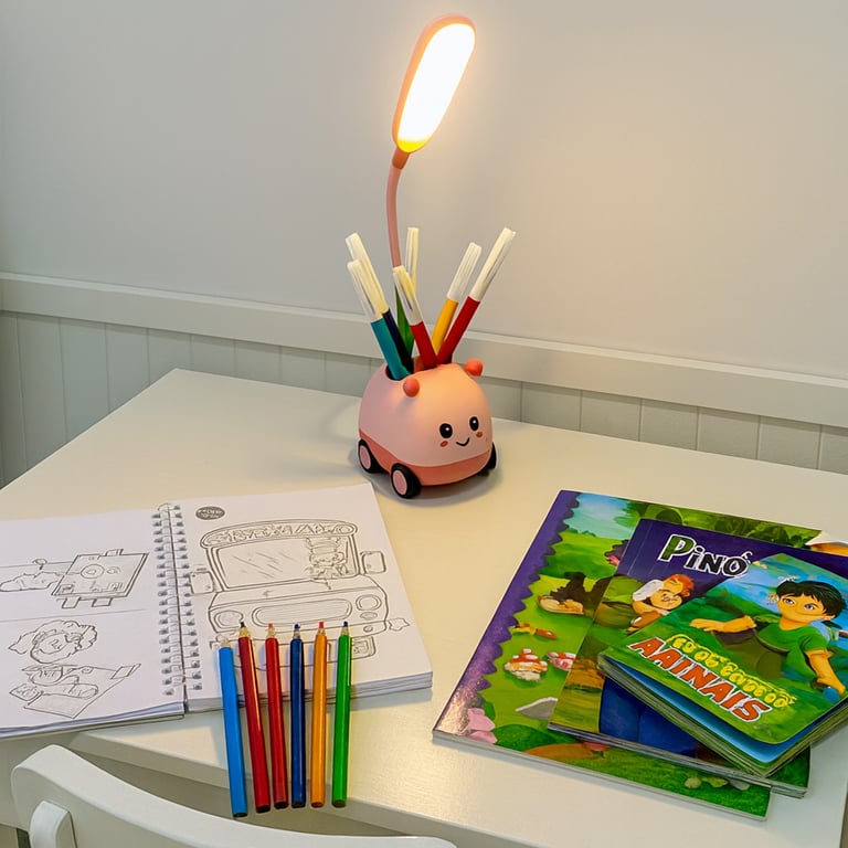 Observações ACOMPANHA CABO USB PARA CARREGAR, NÃO ACOMPANHA FONTE,CARGA VIA USB, LUZ SUAVE, ANGULO AJUSTÁVEL 360 GRAUS, APONTADOR TRASEIRO. POSSUI COMPARTIMENTOS PARA ORGANIZAR OBEJTOS COMO CANETAS, LÁPIS, CLIPS. FORMATO DE CARRO COM AS RODAS LIVRES.