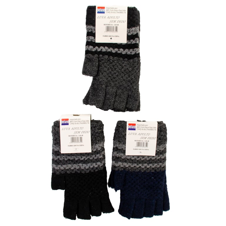 LUVA LÃ ADULTA 19X10 CM MEIO DEDO LISTRADA