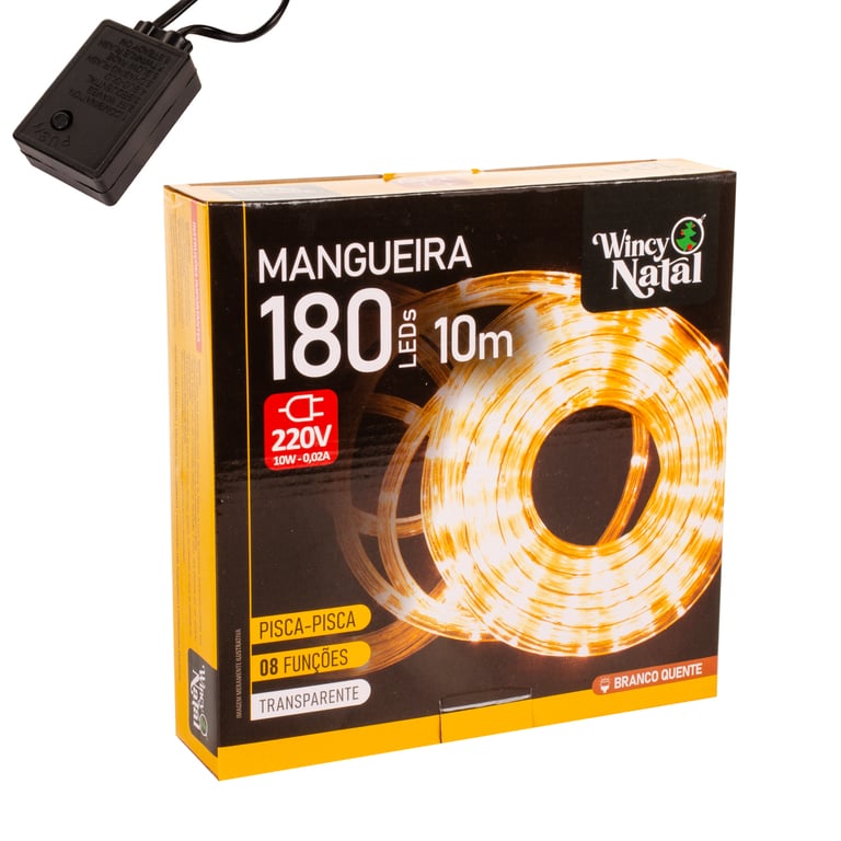MANGUEIRA LUMINOSA 180 LEDS BRANCO QUENTE 8 F 10 M 220V