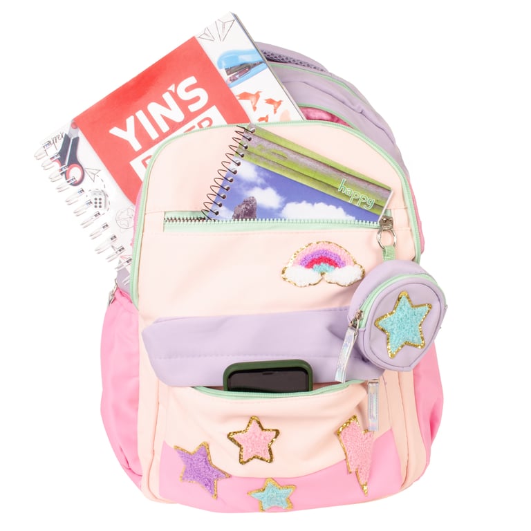 MOCHILA INFANTIL 45X29X20 CM CANDY COLOR TONS PASTÉIS COM NIQUELEIRA