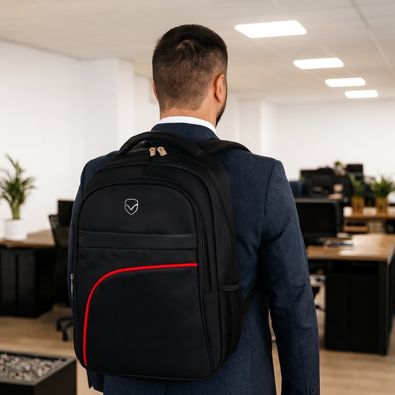 MOCHILA NOTEBOOK 45X30X17 CM PRETA COM FAIXA VERMELHA