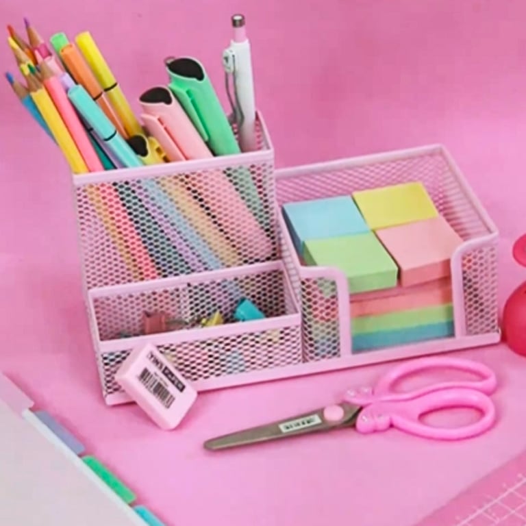 ORGANIZADOR ESCRITÓRIO METAL 10X20X10 CM 3 DIVISÓRIAS TONS PASTÉIS
