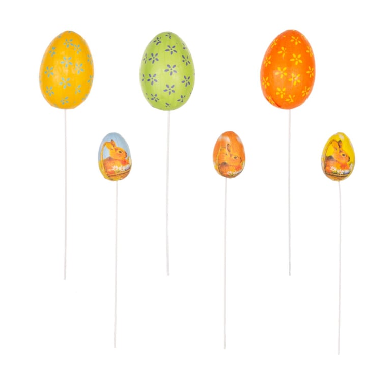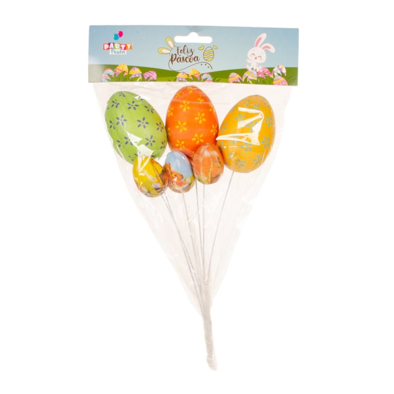 OVO ISOPOR 6 PEÇAS MISTOS DECORADO NO PALITO
