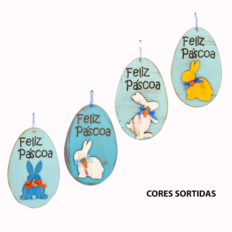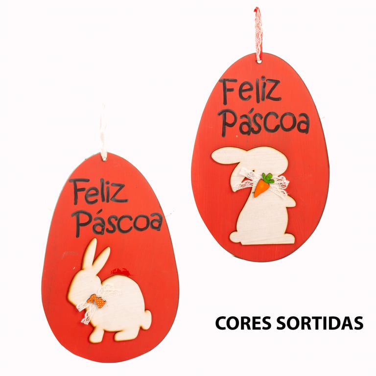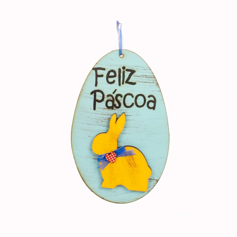 OVO MDF 30X18 CM COELHO FELIZ PÁSCOA PINTADO
