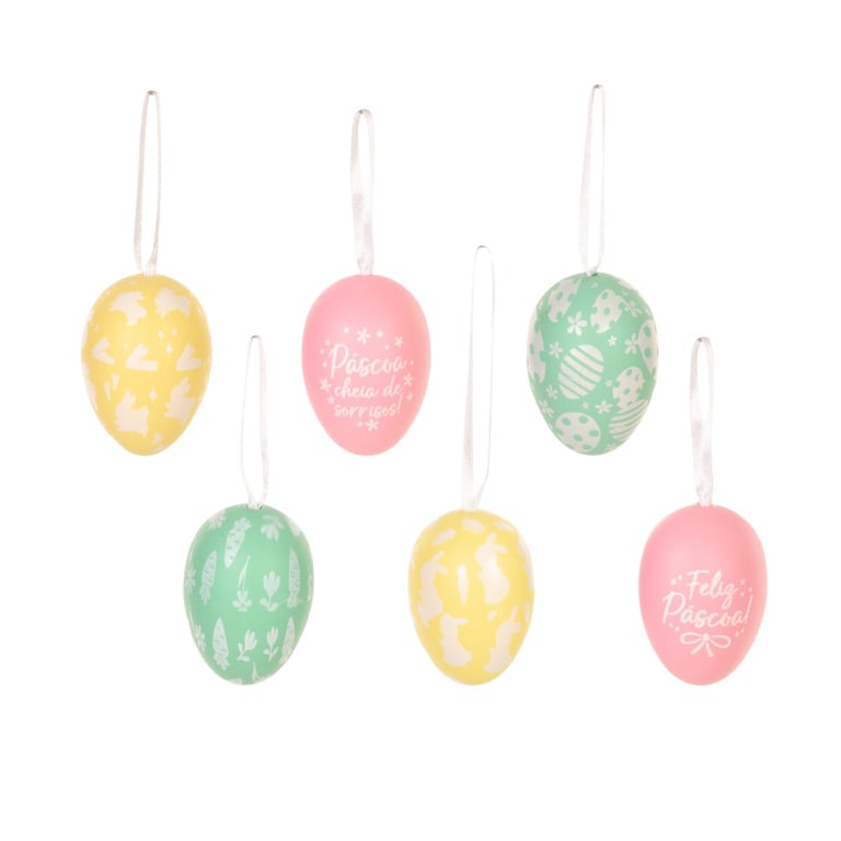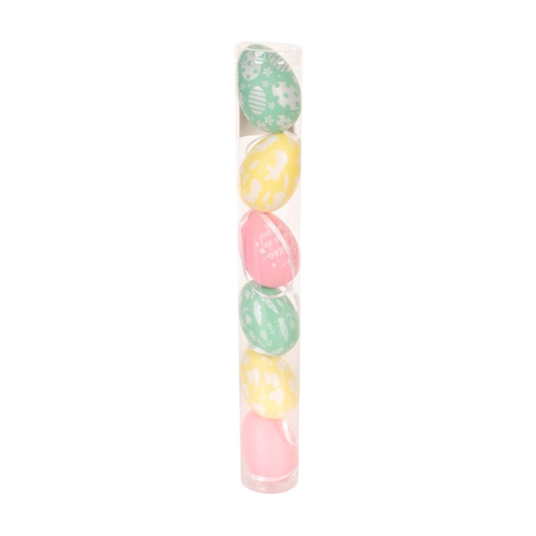 OVO PLÁSTICO 6 CM 6 PEÇAS DECORADO NO TUBO